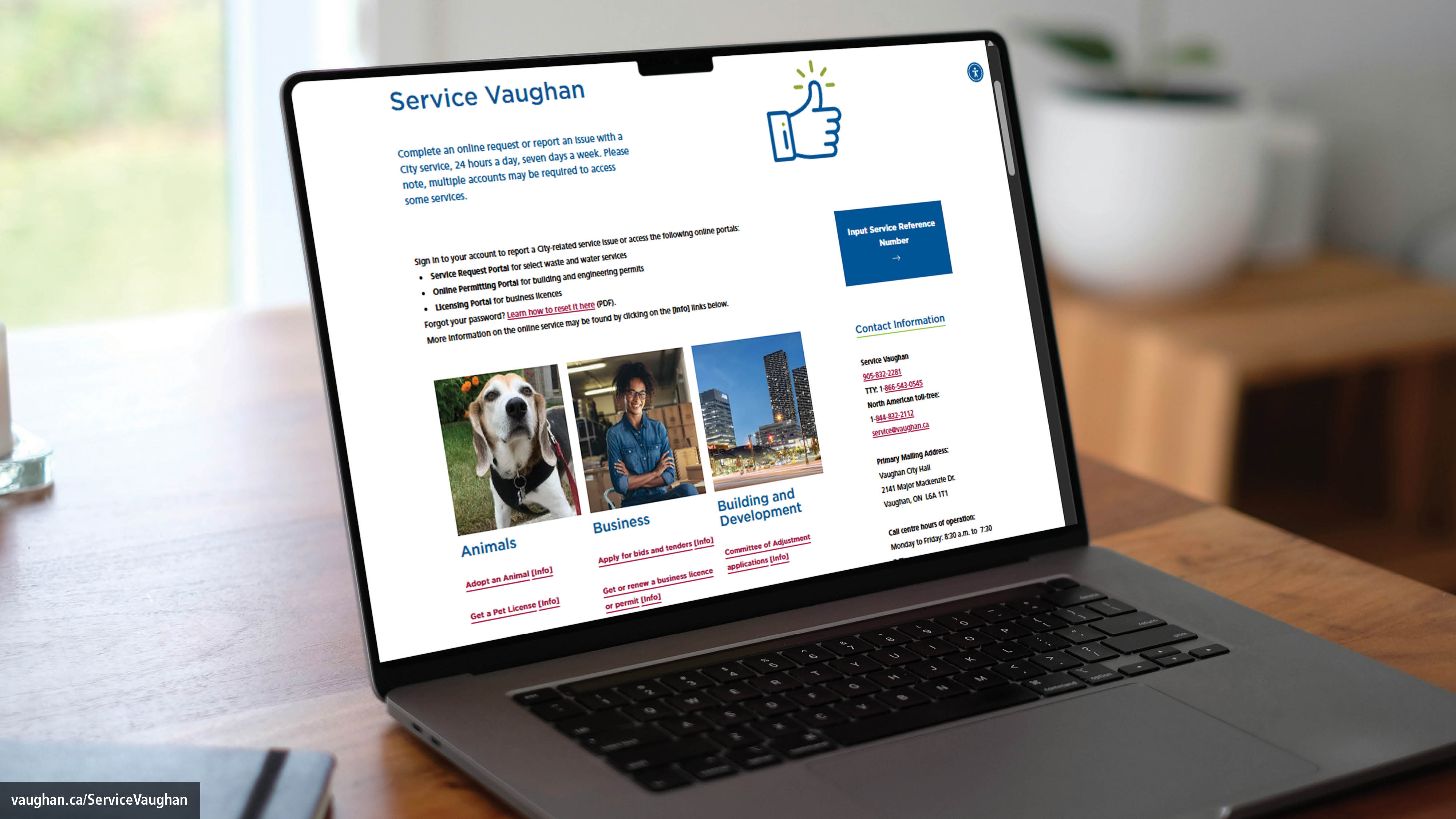 Service Vaughan agents are standing by to address your inquiries. Call 905-832-2281 or email service@vaughan.ca for assistance. Call centre hours are Monday to Friday from 8:30 a.m. to 7:30 p.m., with after-hour service available for municipal emergencies.
